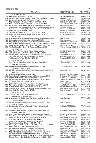 258 Tetraflon Corp., Eje 3 Norte 115 - Parque Indtl Toluca, 50200 J. Carlos Martínez 800-841-3846 722-249-6545