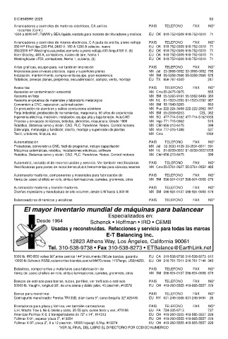 Automotriz, incluido el de reconstrucción y servicio. Ver también rectificadoras PAIS TELEFONO FAX NO*